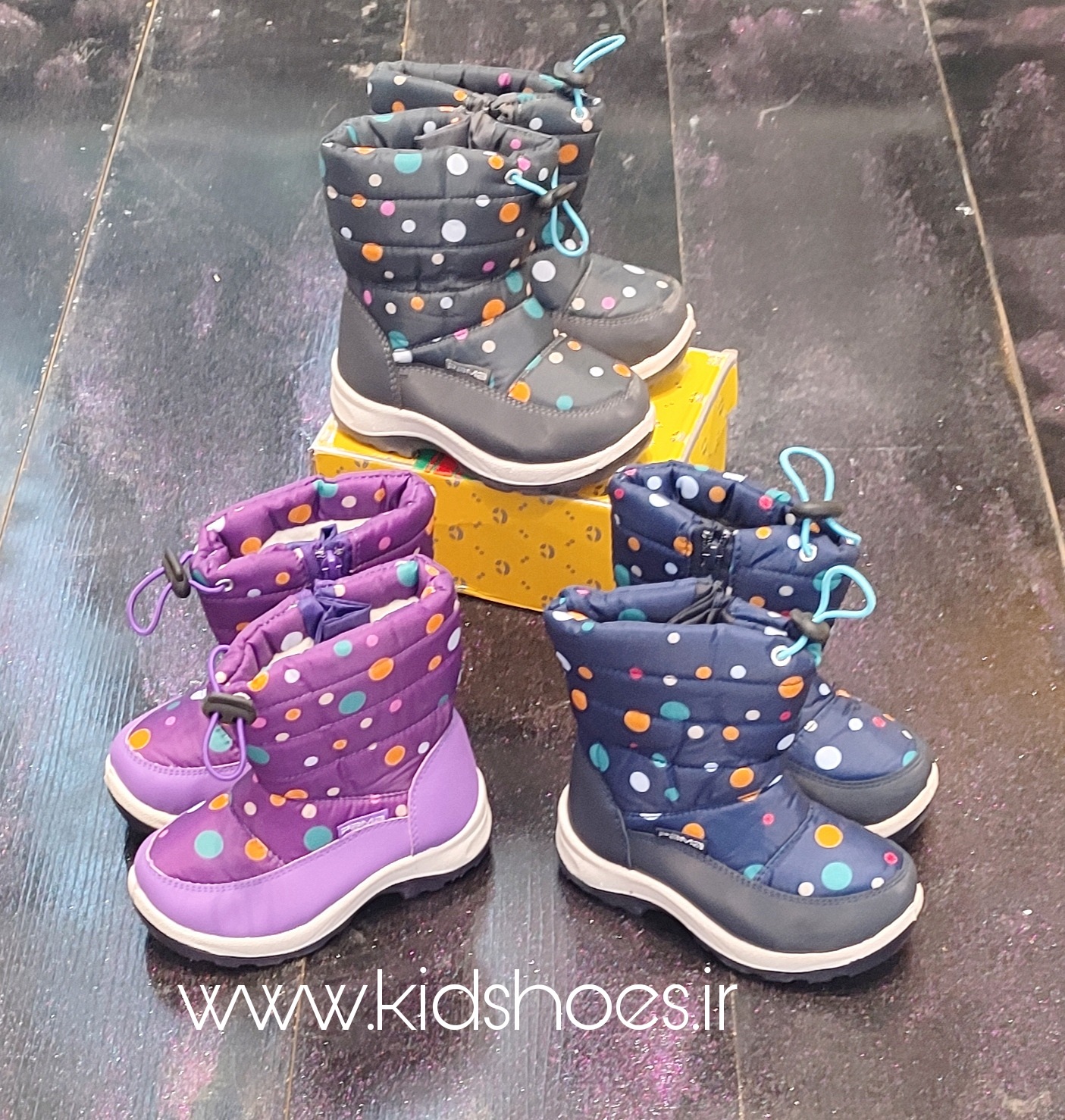 بوت بچگانه مدل گل یخ توپی برند پاما Pamaرویه کاملا ضد آب، بغل زیپ کاور دار