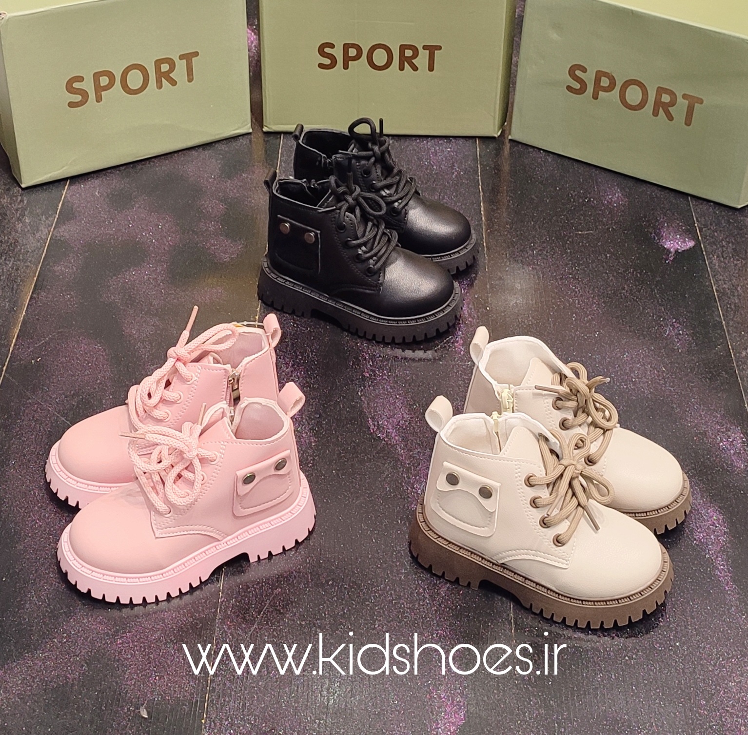 بوت وارداتی مدل جیبی برند کیدز لانژرویه چرم صنعتی درجه یک، زیره منعطف