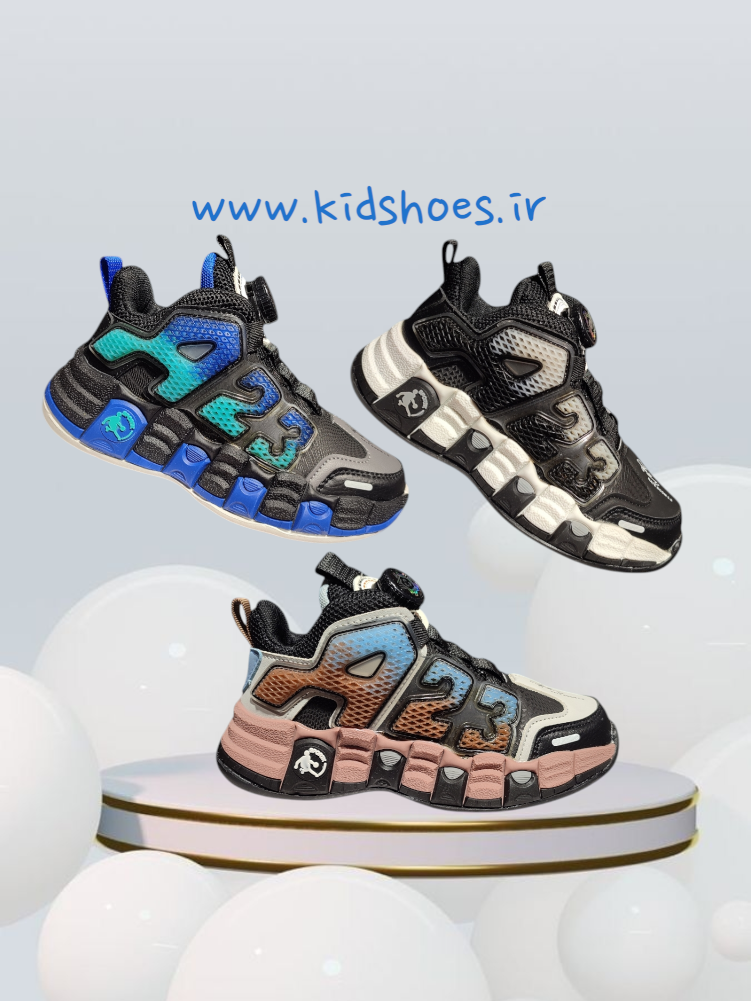 کتونی بچگانه وارداتی مدل A23 برند AShoesزیره EVA نرم و ضد سایش، رویه کورتکس ضدآب، کف دوخت